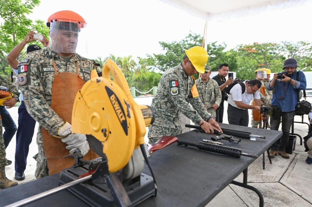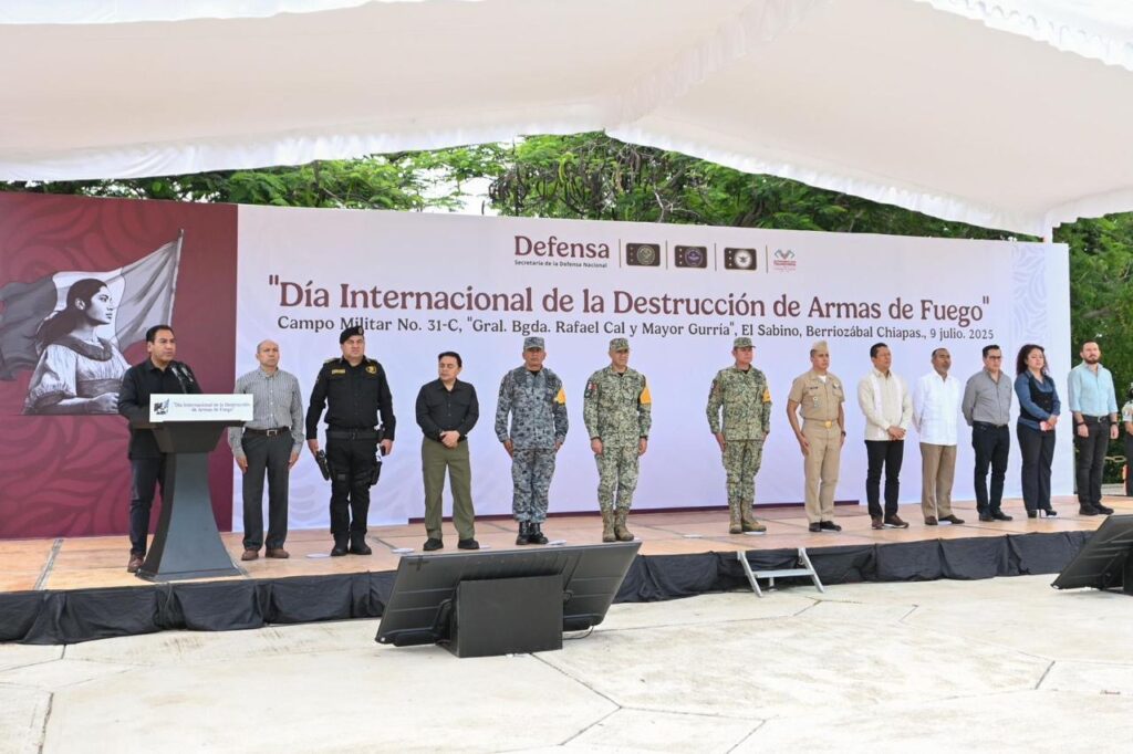 “Porque cada arma destruida significa un niño que puede ir seguro a la escuela, una madre que duerme tranquila en casa, una comunidad que vive sin miedo. Estamos construyendo un Chiapas donde las juventudes elijan libros y no las balas, donde las manos del pueblo siembren, construyan, creen un lugar que sea de regocijo para su familia y para su pueblo”, manifestó.