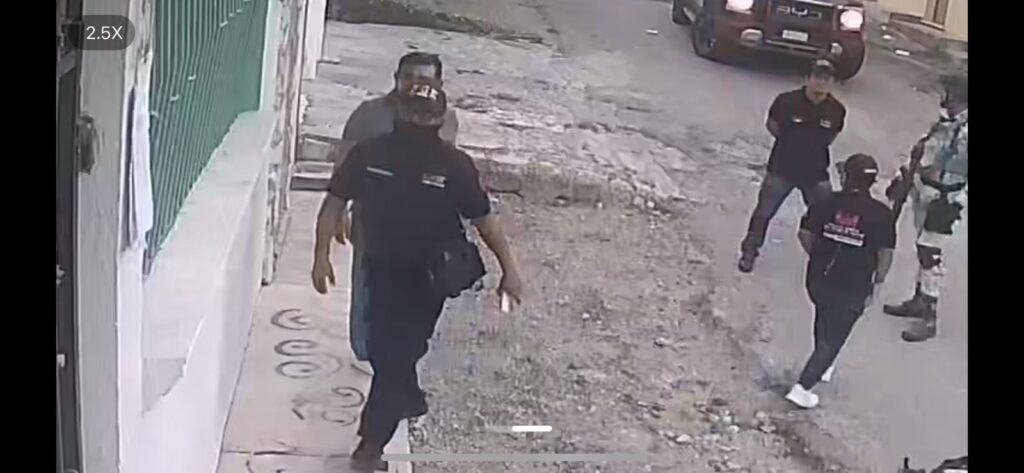 Mediante videos de vigilancia, pudo constatar que los policías y militares cerraron la calle con vehículos oficiales, y no mostraron ninguna orden judicial para registrar su domicilio. Los agentes forzaron el candado de la puerta principal, provocando daños en la misma.