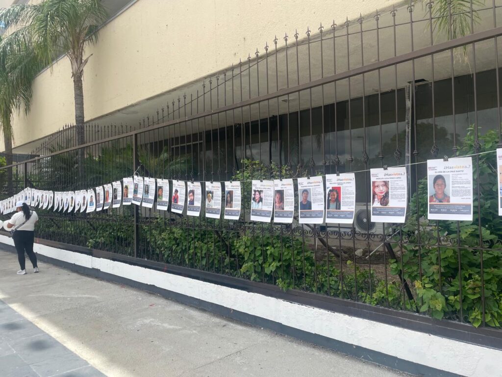 Durante la protesta en la explanada de la sede del poder ejecutivo, las y los manifestantes colocaron cientos de fotografías, flores, veladoras y mensajes en memoria de las víctimas. Con consignas como “¿Dónde están?” y “Vivos se los llevaron, vivos los queremos”, denunciaron la inacción de las autoridades.