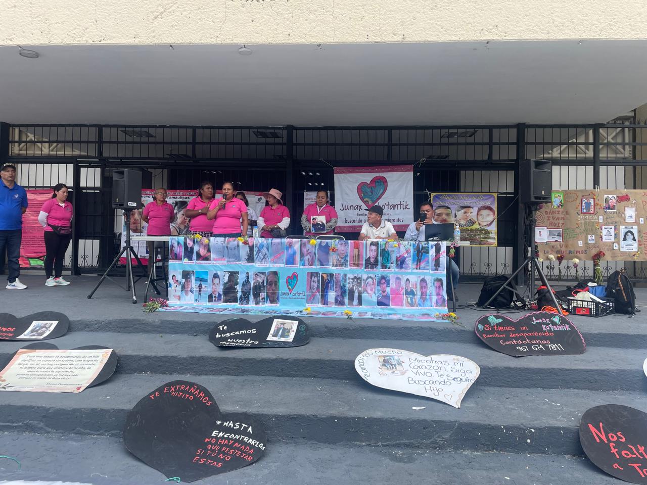 En la protesta participó la colectiva Junax Ko’tantik (Nuestra Casa, en tsotsil), integrada por madres, esposas y hermanas de migrantes chiapanecos que desaparecieron mientras intentaban llegar a Estados Unidos en busca de mejores condiciones de vida. También forman parte del colectivo familias cuyos seres queridos migraron a otras entidades del país como Sonora, Tamaulipas o Tijuana para trabajar, y posteriormente desaparecieron.