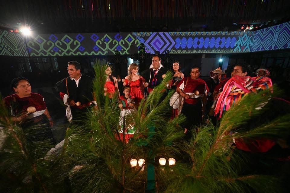 Previo a la ceremonia, los tsotsiles de San Andrés Larráinzar realizaron un ritual en el que entregaron al gobernador el Bastón de Mando y lo vistieron con el traje tradicional de su comunidad.