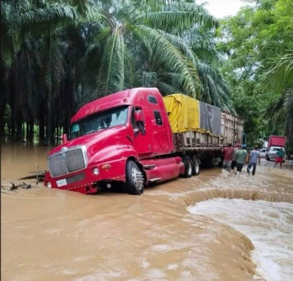 Esta situación afecta a cientos de vehículos de carga con productos agrícolas como plátano, papaya y melón, que no pueden avanzar hacia el centro y norte del país.