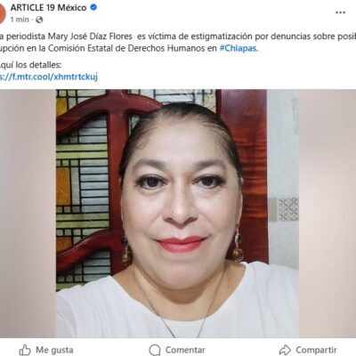 Condena ARTICLE 19 estigmatización contra la periodista Mary José Díaz que denunció a titular de la CEDH