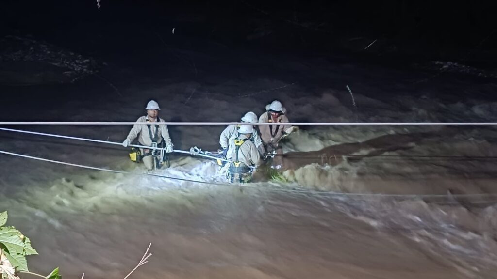 Una cuadrilla de 119 técnicos, con 25 vehículos todo terreno, seis torres de iluminación y 14 plantas de energía se han establecido en la comunidad, donde cayó la torre de la línea de alta tensión, que proviene de la presa La Angostura.