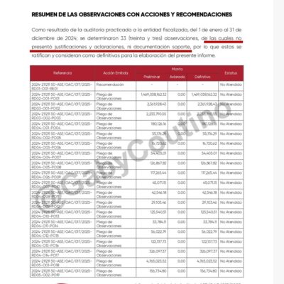 Nunca se presentaron justificaciones, aclaraciones, ni documentación sobre el monto observado por la ASECH Los resultados del Programa Anual de