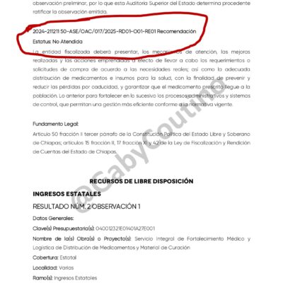Denuncian desfalco por más de 245 millones de pesos en Secretaría de Salud de Chiapas