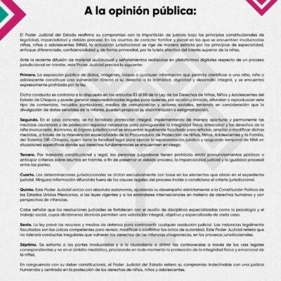 Tribunal de Chiapas interviene tras exposición mediática de una menor en conflicto de custodia