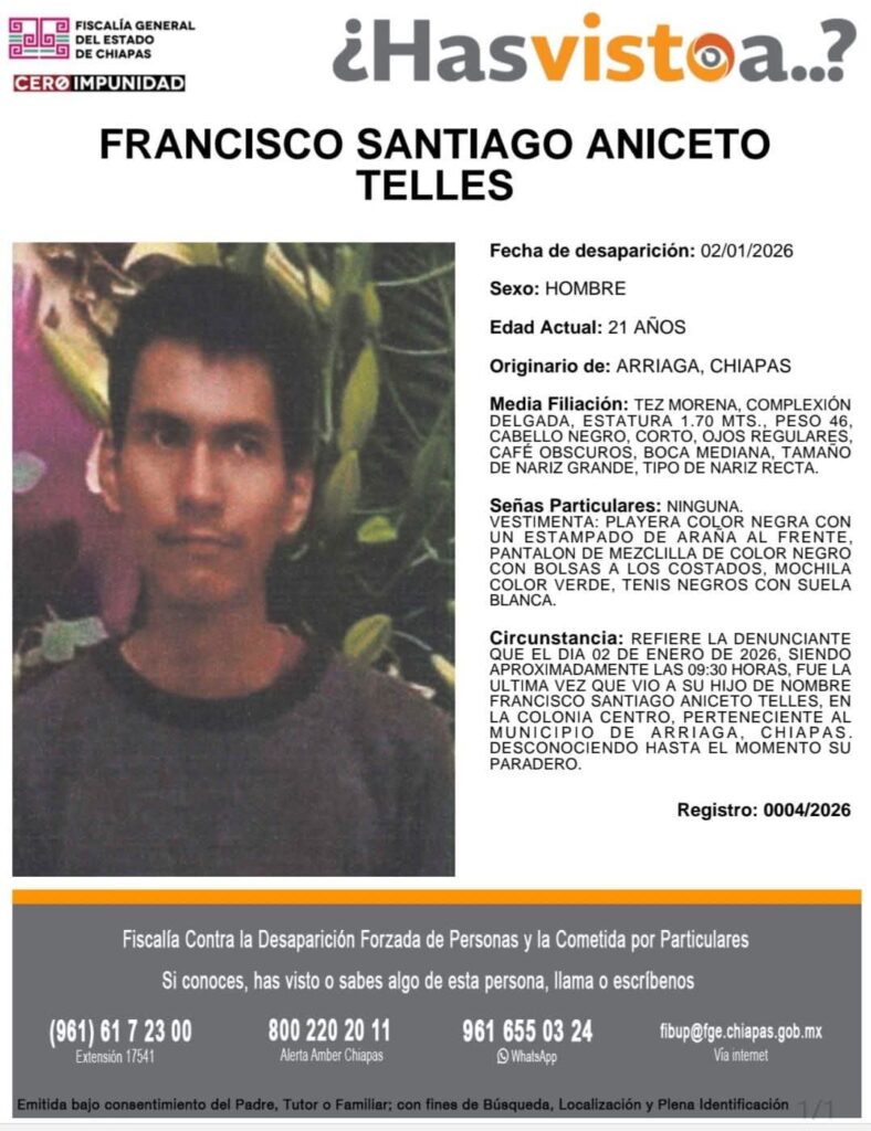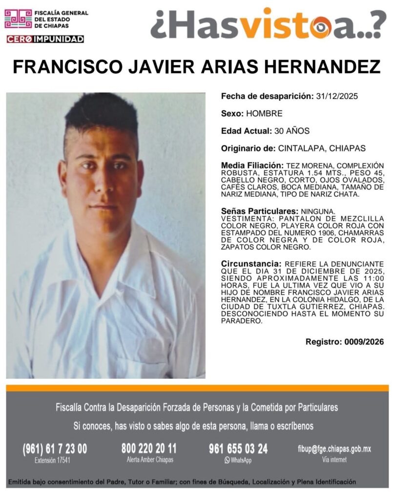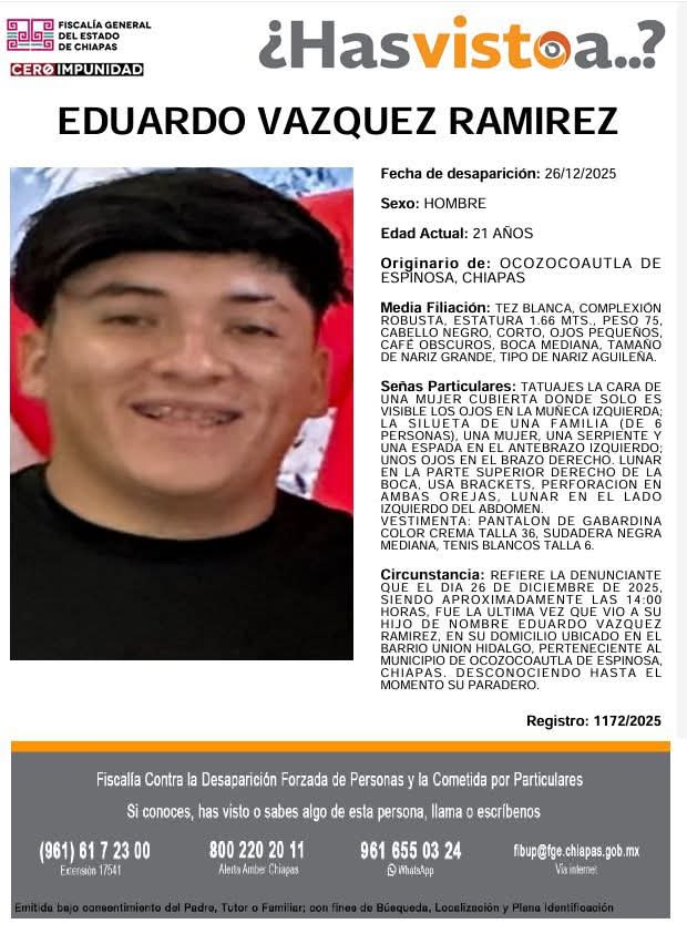 - 26 de diciembre: Eduardo Vázquez Ramírez (21 años), en Ocozocoautla.