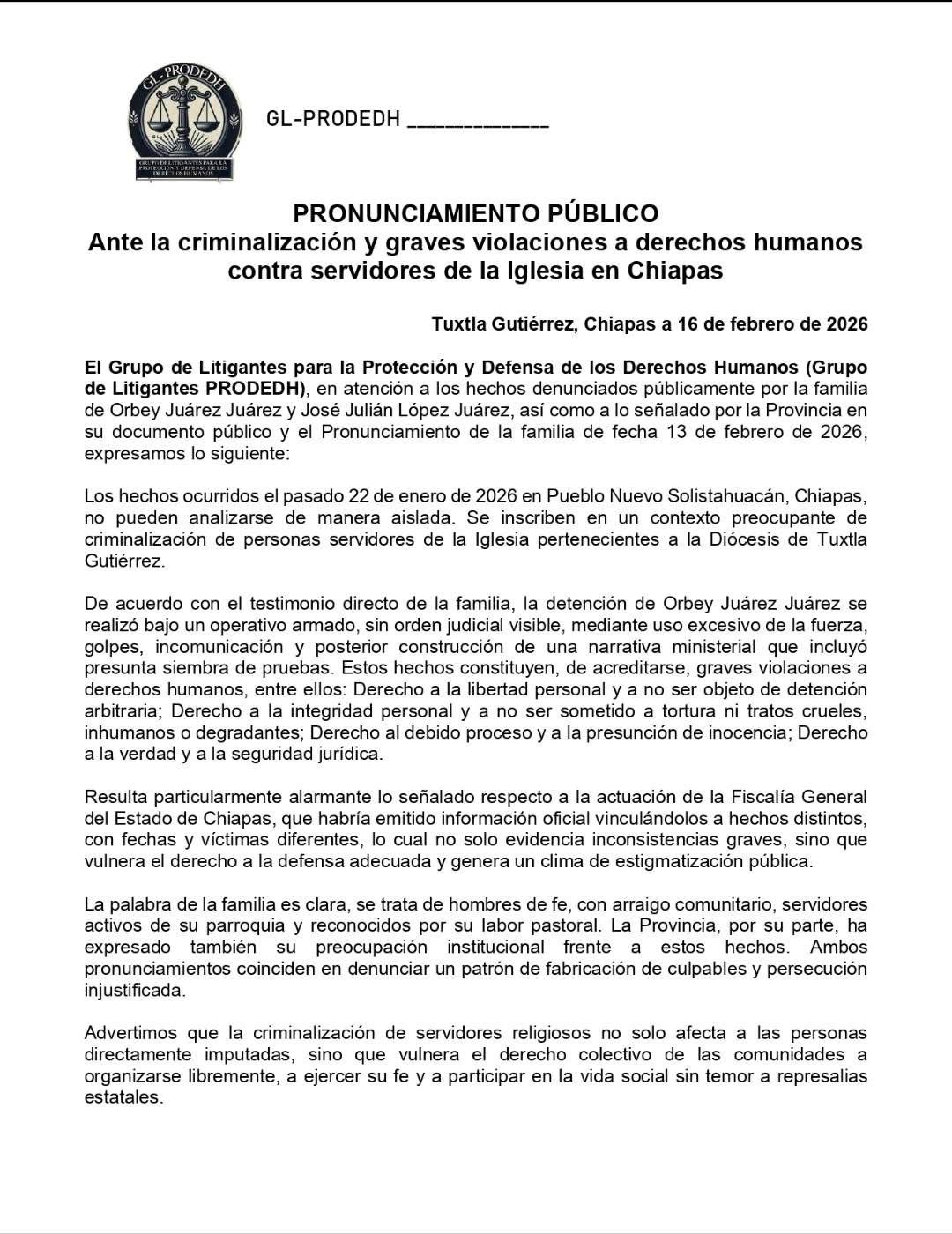 Orbey Juárez Juárez y José Julián López Juárez, servidores de la iglesia católica en Pueblo Nuevo Solistahuacán permanecen privados de…