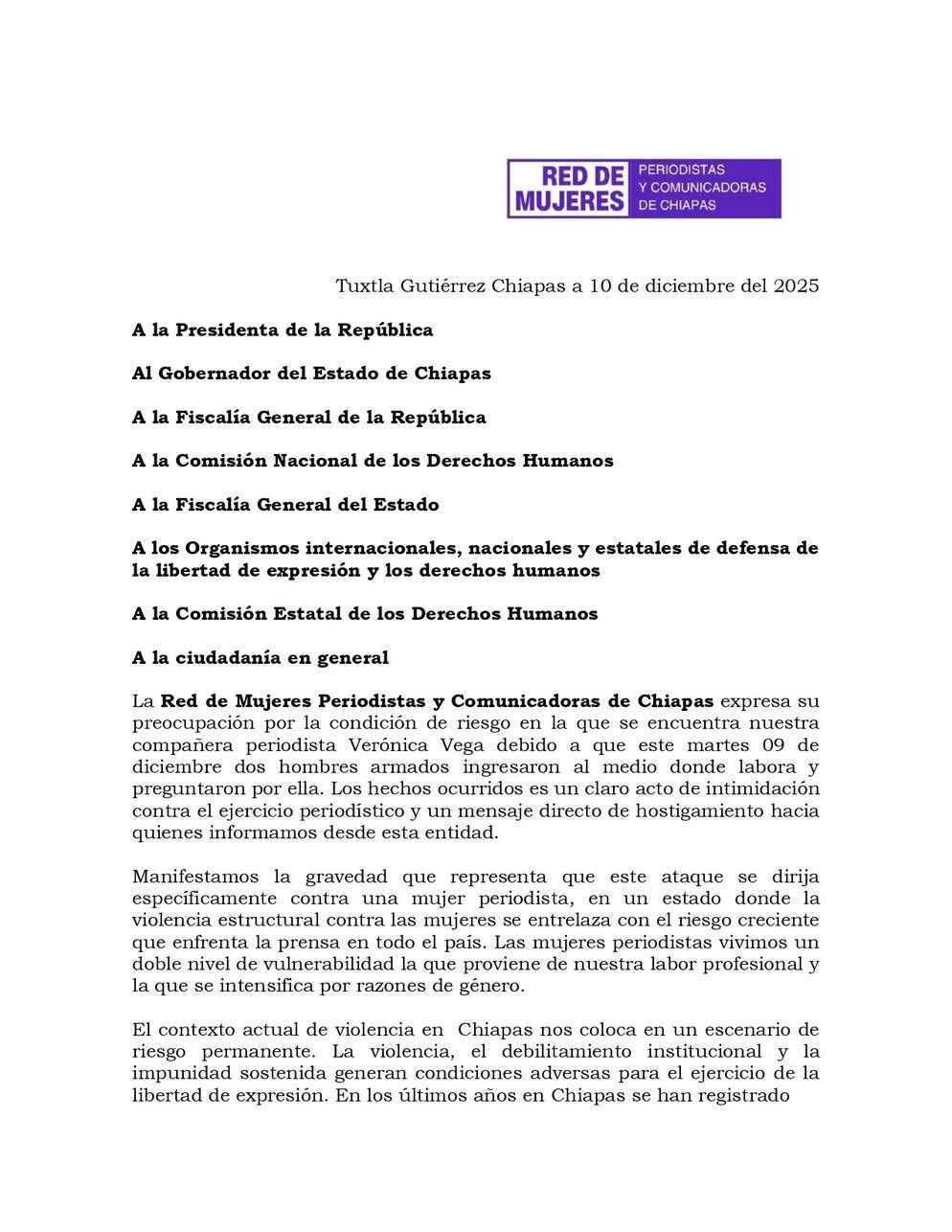 Tuxtla Gutiérrez, Chis. 11 Dic.- La Red de Mujeres Periodistas y Comunicadoras de Chiapas y la Asociación de Periodistas y…